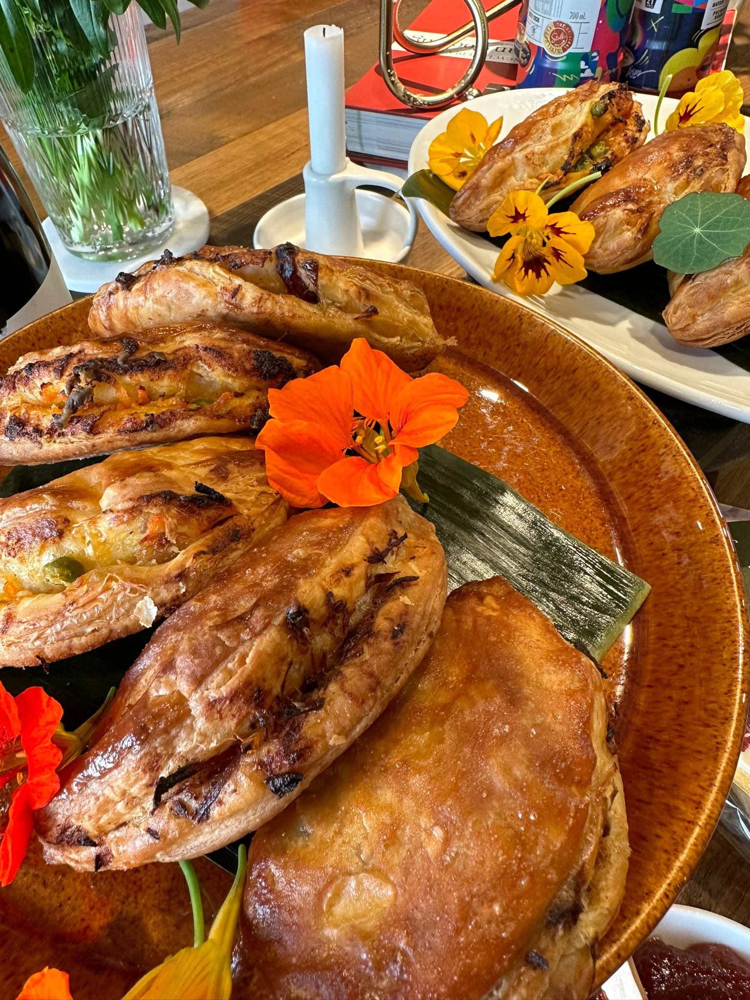 Slow baked corned beef in vegetable broth and sauteed cabbage cooked with aromatic spices and French herb de provence enveloped in buttery puff pastry baked to perfection